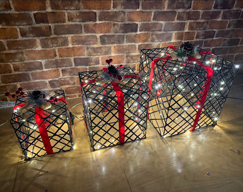 Χριστουγεννιάτικα διακοσμητικά δώρα φωτιζόμενα LED 20L/40L/60L Θερμό Φως για επιδαπέδια τοποθέτηση IP44 Διαστάσεις δώρων: 15x15x18cm/20L, 20x20x24cm/40L, 25x25x29.5cm/60L Τα χρώματα ενδέχεται να διαφέρουν ελαφρώς από την πραγματικότητα.