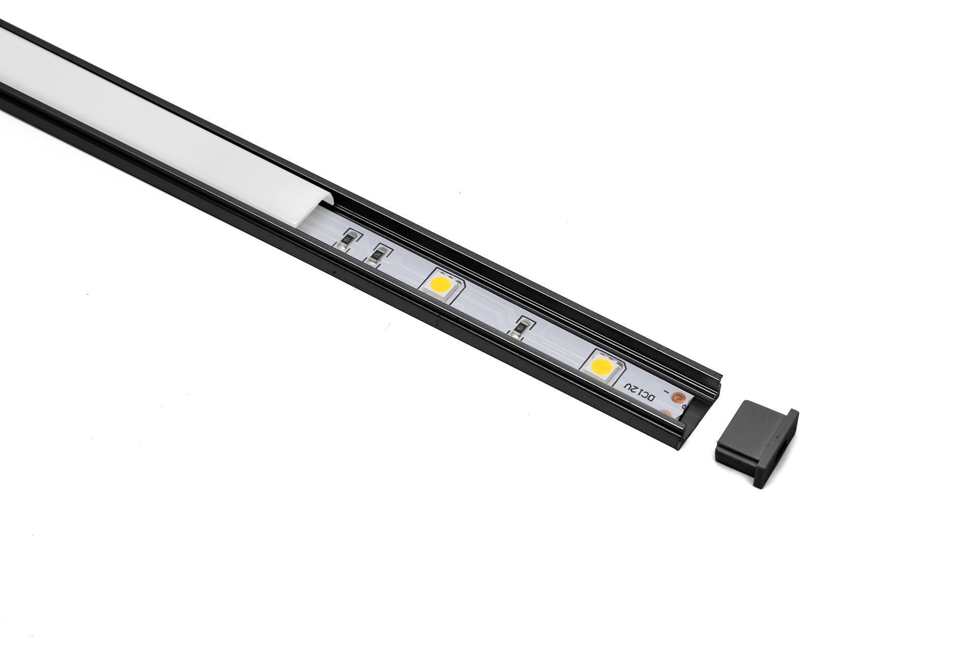Προφίλ αλουμ. ΜΑΥΡΟ επίτοιχο Π + κάλυμμα μαύρο ή λευκό για λεντοταινία (2m)